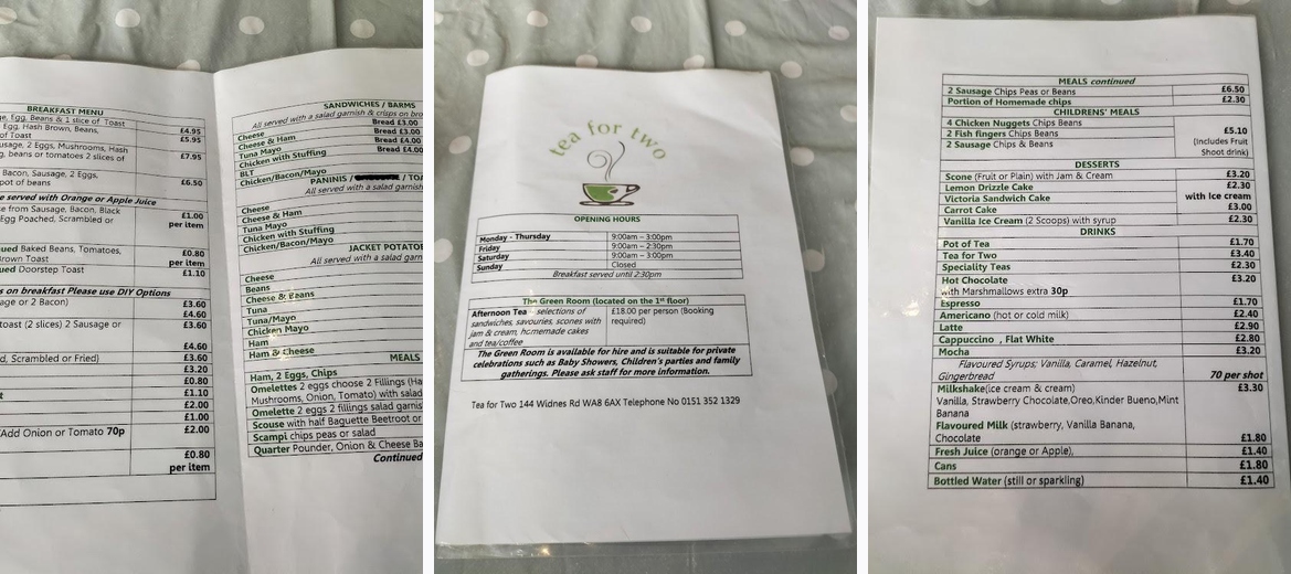 Welcome to Tea for Two, your charming tea room destination in Widnes! Indulge in our delightful afternoon teas, light lunches, and tempting cakes served in a warm, inviting atmosphere. Our cozy space is perfect for unwinding, catching up with friends, or savoring a quiet moment. We also offer a beautiful upstairs function room, ideal for hosting special occasions like baby and bridal showers. With a focus on exceptional service and a fantastic selection of teas, Tea for Two is where relaxation meets celebration. Join us at 144 Widnes Rd for delicious food and unforgettable experiences!Visitors rave about the attentive and friendly staff who create a welcoming atmosphere, making each guest feel at home.